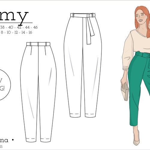 High Waist Pants Pdf Sewing Pattern Sizes 4 16 Eu 34 46 Etsy
